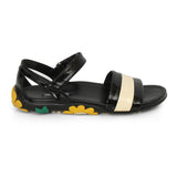 Black And White Patent Leather Floral Embellished Sandals Size: 39