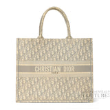 Ecru and Gray Dior Oblique Embroidery Booktote