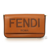 Script Logo Brown Leather Wallet On Chain Bag