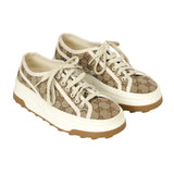Step into timeless style with the Gucci Beige and White Tennis 1977 Sneakers, crafted in signature GG canvas with white leather trim and the iconic green-red-green web stripe. These sneakers feature a vintage-inspired silhouette elevated with contemporary comfort, including a textured rubber sole and logo patch on the tongue. Designed for effortless versatility, they pair perfectly with both casual and elevated looks.