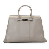 Grey Leather Lady Bamboo Top Handle Bag