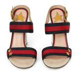 Multicolour Leather & Web Trim Block Heel Sandals - 39.5