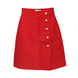 Red Mini Skirt With Gold And Pearl Butto