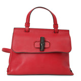 Red Pebbled Leather Bamboo Daily Top Handle Bag Small