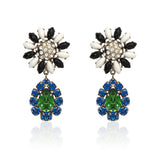 Shop pre-loved Miu Miu Multicolor Drop Earrings designed with a distinctive flower motif in silver tone, detailed in black and white accents for a bold yet elegant look. The earrings are finished with a striking green drop element, surrounded by subtle blue detailing, adding depth and contrast to the design. Lightweight and eye-catching, these earrings reflect Miu Miu’s playful yet refined aesthetic, making them a standout accessory for both day and evening styling.