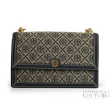 T Monogram Navy/Beige Shoulder Bag with Detachable Strap